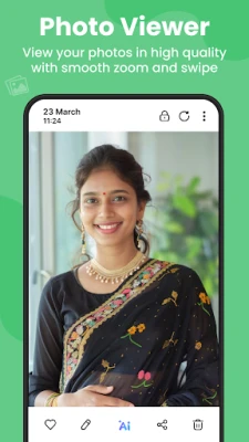 உங்கள் நினைவுகளை மேலும் சிறப்பாக அனுபவிக்க, இந்த செயலி பல்வேறு அம்சங்களை வழங்குகிறது. உள்ளமைக்கப்பட்ட ஸ்லைடுஷோ அம்சம் மூலம் படங்களை தானாகவே கண்டு மகிழலாம் அல்லது கதை வடிவில் விரைவான மறுபார்வையைப் பெறலாம். உங்களுக்குப் பிடித்த எந்தப் புகைப்படத்தையும் உங்கள் தொலைபேசியின் வால்பேப்பராக அமைக்கலாம். வசதியான பார்வைக்கு லைட் மற்றும் டார்க் தீம்கள் உள்ளன. மேலும், உங்கள் விருப்பத்திற்கேற்ப கேலரி காட்சியைத் தனிப்பயனாக்கலாம். முக்கிய கருவிகளை உங்கள் விரல் நுனியில் வைத்திருக்க, ஸ்மார்ட் ஃப்ளோட்டிங் பட்டன் உள்ளது, இது AI எடிட்டர், கிளீனர், பிரைவேட் வால்ட் மற்றும் ஃபிளாஷ்லைட் ஆகியவற்றை உடனடியாக அணுக உதவுகிறது. ஒரு அழைப்பிற்குப் பிறகு, உங்கள் வால்ட் மற்றும் ஸ்டோரை எளிதாகப் பார்க்க After Call அம்சம் உதவுகிறது. உங்கள் டிஜிட்டல் நினைவுகளை முழுமையான மற்றும் புத்திசாலித்தனமான முறையில் நிர்வகிக்க, "Gallery - Photo Album, Vault" ஒரு சிறந்த துணையாகும்.