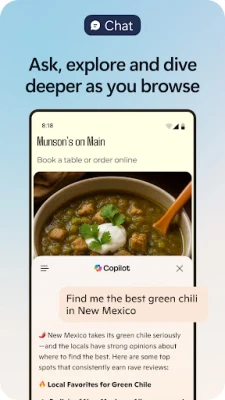 Microsoft Edge என்பது கோபைலட் உள்ள ஒரு AI உலாவி. உங்கள் தனிப்பட்ட AI உதவியாளரான கோபைலட் மூலம், நீங்கள் கட்டுரைகள், வீடியோக்களை சுருக்கலாம், கேள்விகளுக்குப் பதிலளிக்கலாம் மற்றும் படங்களை உருவாக்கலாம். ஜிபிடி-5 மூலம் இயங்கும் இது, அறிவுபூர்வமான மற்றும் பயனுள்ள உலாவலுக்கு உதவுகிறது.
