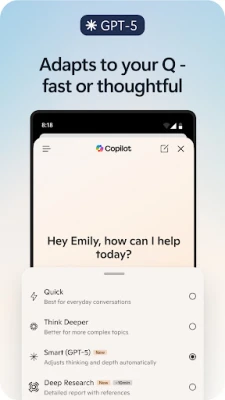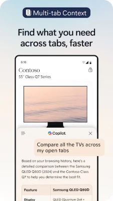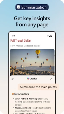 மைக்ரோசாஃப்ட் எட்ஜ்-இல் உள்ள ஒருங்கிணைந்த கோபைலட் (Copilot) மூலம் செயற்கை நுண்ணறிவின் ஆற்றலை உங்கள் விரல் நுனியில் உணருங்கள். உங்கள் தேடல்களை மேம்படுத்தி, விரைவான, துல்லியமான மற்றும் தனிப்பயனாக்கப்பட்ட முடிவுகளைப் பெறுங்கள். படங்களைப் பதிவேற்றி, அவற்றிலிருந்து தகவல்களைப் பெறவும் அல்லது புதிய யோசனைகளை உருவாக்கவும் கோபைலட்டைப் பயன்படுத்தலாம். நீண்ட வலைப்பக்கங்கள், PDF ஆவணங்கள் மற்றும் வீடியோக்களின் சாராம்சத்தை நொடிகளில் சுருக்கி, தெளிவாகவும் ஆதாரப்பூர்வமாகவும் தகவல்களைப் பெற AI-யைப் பயன்படுத்துங்கள். ஜிபிடி-5 (GPT-5) உடன், மிக மேம்பட்ட AI அமைப்பின் உதவியால், மிகக் குறைவான முயற்சியில் நிபுணர் மட்டத்திலான முடிவுகளை அடையலாம்.