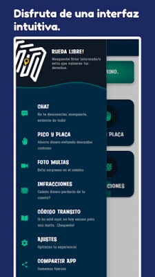 Movilidad Colombia செயலி கொலம்பியாவில் தடையற்ற பயணத்திற்கு உதவுகிறது. போக்குவரத்து அபராதங்கள், நெரிசல் ஆகியவற்றைத் தவிர்க்கவும், நிகழ்நேர ஃபோட்டோ அபராத இருப்பிடங்கள், பிகோ ஒய் பிளாக்கா தகவல்கள், போக்குவரத்து விதிகள் ஆகியவற்றை அறிந்து கொள்ளவும் இது ஒரு முழுமையான கருவியாகும். உங்கள் நகர்ப்புற பயணத்தை எளிமையாகவும், பாதுகாப்பாகவும், சிக்கனமானதாகவும் மாற்றுகிறது.