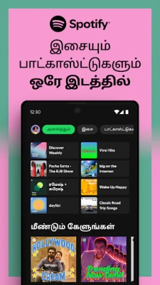 Spotify ஏன் உங்களுக்கான சிறந்த தேர்வு? 8 கோடிக்கும் அதிகமான பாடல்களையும், 40 லட்சத்திற்கும் மேற்பட்ட பல்வேறு கருப்பொருள்கள் கொண்ட பாட்காஸ்ட்களையும் உள்ளடக்கிய ஒரு மாபெரும் தொகுப்பை Spotify தொடர்ந்து உங்களுக்காகப் புதுப்பிக்கிறது. புதிய இசை வெளியீடுகள், பிரத்யேக ஆல்பங்கள் மற்றும் அசல் பாட்காஸ்ட் தொடர்களை நீங்கள் கண்டறியலாம். பாடலின் வரிகளை உள்ளிட்டு உங்களுக்குப் பிடித்த இசையைக் கண்டறியும் தனித்துவமான அம்சம், உயர் தர ஒலி அனுபவம், அத்துடன் உங்கள் மனநிலைக்கு ஏற்ற பிளேலிஸ்ட்களை உருவாக்கிப் பகிரும் சுதந்திரம் எனப் பல சிறப்புக்கூறுகள் இங்குண்டு. அன்றாடப் புதிய இசைப் பரிந்துரைகள், வெவ்வேறு இசை வகைகளில், உலகெங்கிலும் உள்ள பிராந்தியங்களில், கடந்த தசாப்தங்களில் வெளியான சிறந்த பாடல்கள் எனப் பட்டியலிட்டு, உங்கள் இசை ரசனையை மெருகேற்றுகிறோம். Indian Noir, The Ranveer Show போன்ற பல பிரபலமான பாட்காஸ்ட்களுக்கும் சந்தா சேர்ந்து, எந்த எபிசோடையும் தவறாமல் கேட்கலாம்.