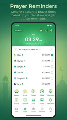 உறுதியான நம்பிக்கைக்கான வழிகாட்டியாக, "WeMuslim" கிப்லா திசைகாட்டி மூலம் காபாவை நோக்கிய சரியான திசையை எளிதாகக் கண்டறிய உதவுகிறது. அன்றாட துஆக்களையும், ஹதீஸ்கள் மற்றும் குர்ஆனை அடிப்படையாகக் கொண்ட நினைவுகூர்தல்களையும் (அஸ்கார்) எளிதில் படித்து ஒத இந்த செயலி உதவுகிறது. ஆன்மீகப் பயிற்சியில் ஈடுபடும்போது உங்கள் துஆக்கள் அல்லது தஸ்பீஹ் எண்ணிக்கைகளை தவறாமல் பதிவு செய்ய, இதில் ஒரு டிஜிட்டல் தஸ்பீஹ் மற்றும் ஜெபமாலை எண்மி உள்ளது. இவை அனைத்தும் உங்கள் தினசரி ஆன்மீகப் பழக்கங்களை மேம்படுத்தி, இறைவனை நினைவுகூர உதவுகின்றன.